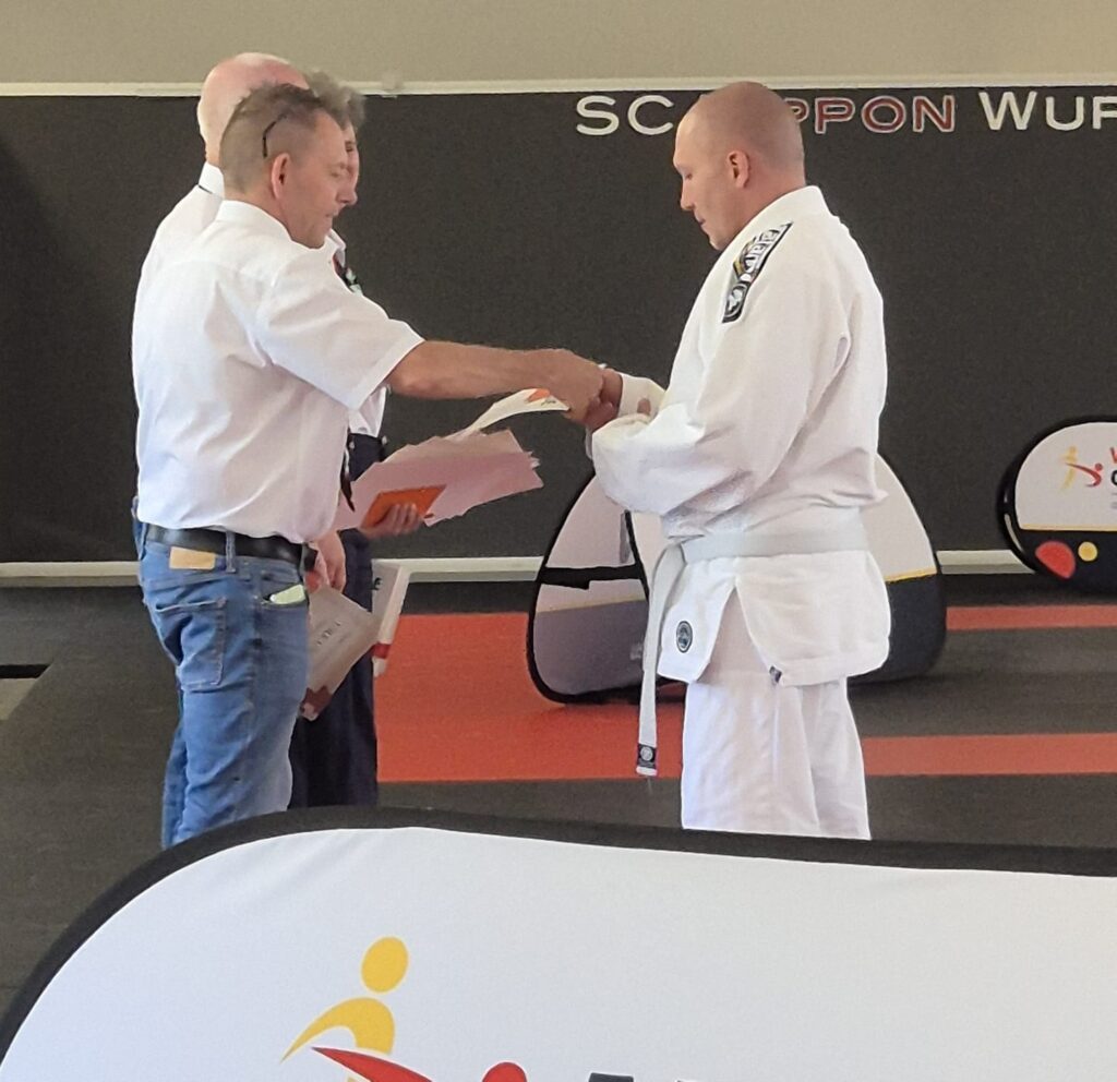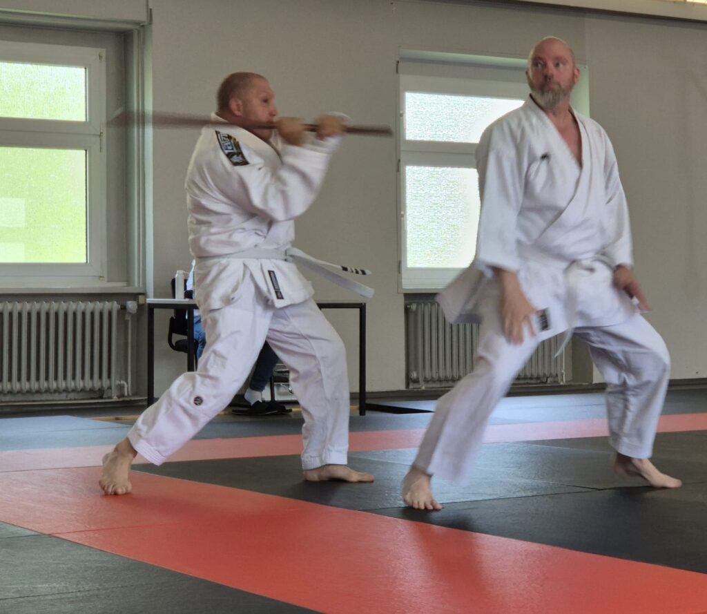 Hanbo Landesprüfung 14.06.2025 Galina , Sonja , Gunnar und Axel – Herzlichen Glückwunsch zum 5 Kyu Hanbo Jutsu